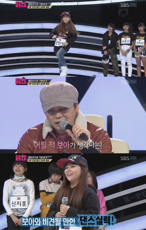 양현석은 “말이 안 나오기는 처음이다. 보아 양도 16살 때 이만큼 못췄을걸요”라며 김민정의 댄스 실력에 놀라워 했다. 이어 그는 “김민정을 천재, 영재라고 부른다. 방예담 김민정 양을 YG로 데리고 가고 싶다”며 욕심을 보였다.