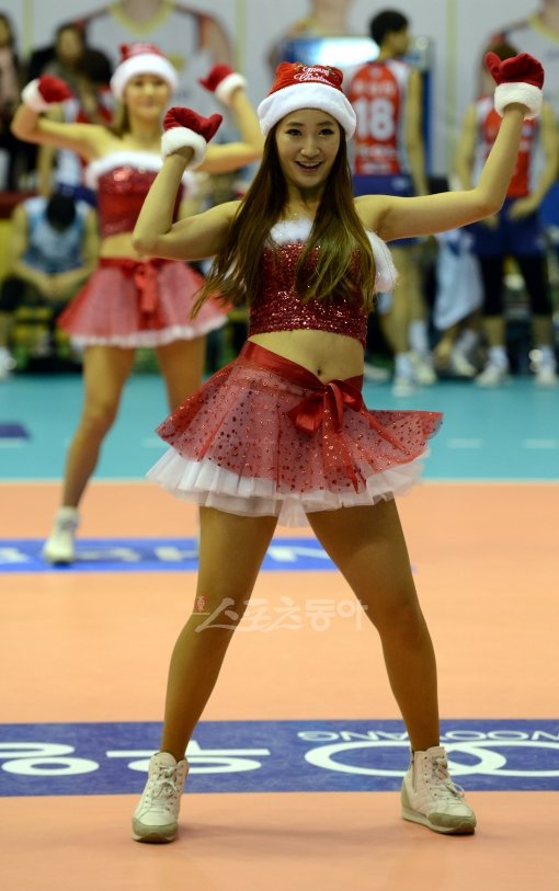16일 오후 아산 이순신실내체육관에서 열린 '2012-2013 NH농협 V리그' 아산 러시앤캐시와 인천 대한항공의 경기에서 러시앤캐시 치어리더가 화려한 공연을 선보이고 있다.