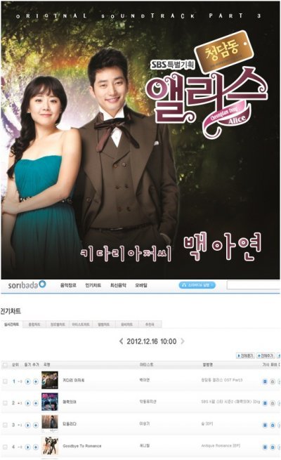 SBS 주말드라마 '청담동 앨리스'가 자체 최고 시청률을 경신하는 등 상승세를 타고 있는 가운데 지난 15일 공개된 OST Part.3 백아연의 '키다리 아저씨'도 주요 음원차트 1위에 올랐다.