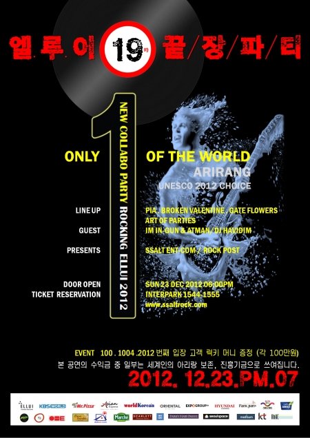 ‘록킹 엘루이 2012 아리랑 파티(Rocking Ellui 2012 Arirang Party)’가 강남 클럽 엘루이에서 오는 12월 23일 오후 7시에 열린다.