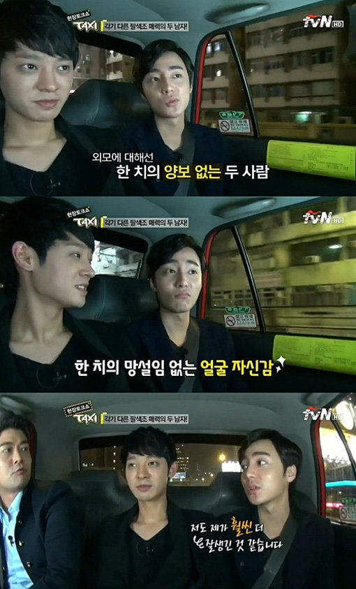 정준영은 “얼굴은 누가 더 잘생긴 것 같냐”는 MC 전현무의 질문에 한 치의 망설임 없이 “내가 더 잘생겼다”고 답했다. 로이킴은 이에 질세라 “나도 내가 훨씬 더 잘생긴 것 같다. 왼쪽 얼굴만큼은 지지 않는다”고 응수했다.