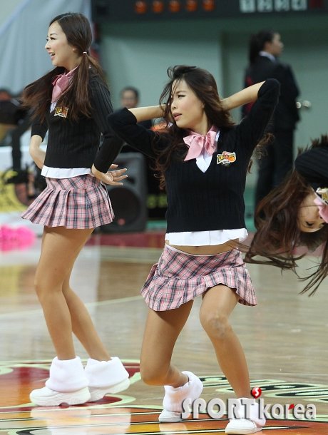 `2012-2013 KB 국민카드 프로농구` 울산 모비스 피버스와 고양 오리온스의 경기가 18일 오후 울산 동천체육관에서 열렸다. 정규 작전타임을 이용해 모비스 치어리더들이 멋진 공연을 펼치고 있다.