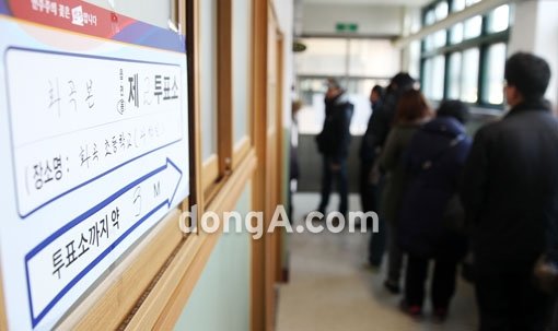 제18대 대통령 선거일인 19일 오전 서울 강서구 화곡초등학교에 마련된 투표소에서 시민들이 투표를 하기 위해 줄지어 서 있다.