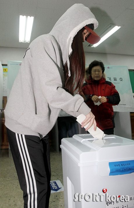가수 아이유가 19일 오전 서울 방배4동 제5투표소에서 ‘제18대 대통령선거’에 참여해 생애 첫 투표를 하고 있다.