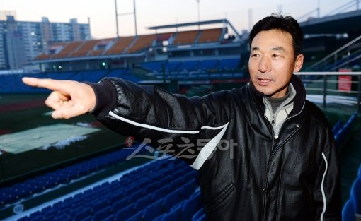 20세기 최고의 컨트롤 투수였던 이상군 한화 3군 코치가 눈 쌓인 대전구장에서 옛날을 기억하고 있다. 유니폼을 벗은 지 10년이 넘었지만 아직도 군살 없는 몸매다. 대전|김민성 기자 marineboy@donga.com