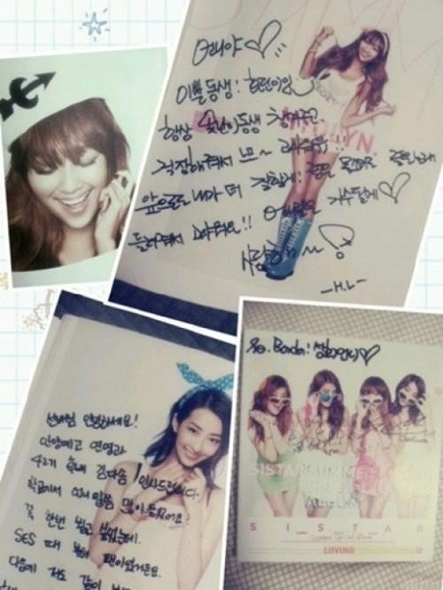 사진에는 효린과 다솜이 바다에게 쓴 손편지가 담겨 있다. 효린은 “언니야. 예쁜 동생 효린이임. 항상 못난이 동생 챙겨주고 걱정해줘서 너무 고마워. 앞으로도 내가 더 잘할게. 좋은 목소리로 좋은 노래 들려줘서 고마워요. 언니 같은 가수 될게. 사랑해”라는 메시지를 예쁜 글씨체로 전했다.
