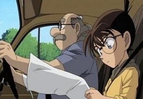 이 게시물은 일본 애니메이션 ‘명탐정 코난’의 한 부분을 캡쳐한 것. 코난은 신문을 보고 있고 아가사 박사는 운전을 하고 있다. 하지만 그림에서 신문과 손이 연결 돼 코난의 발처럼 보이고 코난이 밑을 보며 발로 운전하는 것처럼 보이는 것이다.
