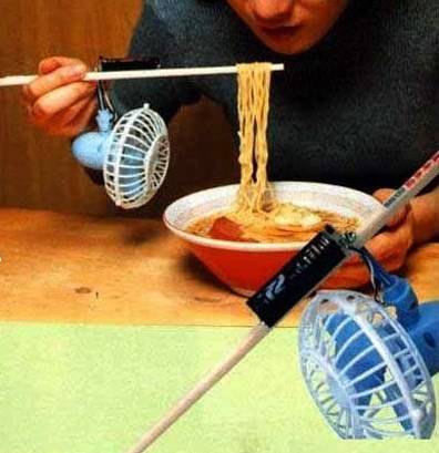 선풍기가 매달려 있는 젓가락이 다소 무겁고 불편해 보이지만 기발한 아이디어로 보는 이의 이목을 끌었다.