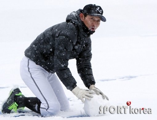 • [포토] 황재균, 폭설로 인한 취소에… 눈덩이로 자폭?
