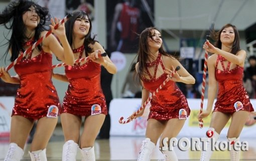 21일 오후 안양실내체육관에서 열린 `2012-2013 KB국민카드 프로농구` 안양 KGC 인삼공사와 전주 KCC 이지스의 경기에서 KGC 치어리더가 율동을 선보이며 흥을 북돋우고 있다.