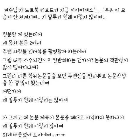 ㅛ가 안써지는 대학생, “겨수님, 제 말투가 이렇지 않아여” 폭소