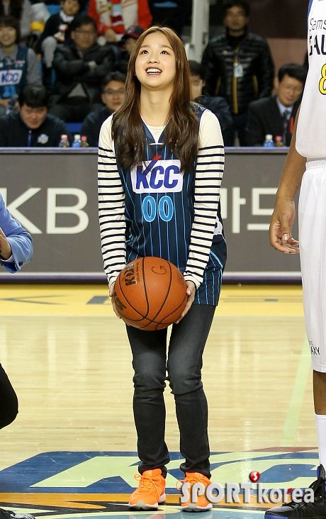 25일 오후 전주실내체육관에서 열린 `2012 KB 국민카드 프로농구‘ 전주 KCC 이지스와 서울 삼성 썬더스의 경기에서 체조선수 손연재가 시구를 하고 있다.