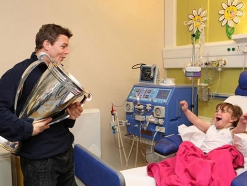 25일 각종 온라인 커뮤니티에는 아일랜드 럭비 선수인 ‘브라이언 오 드리스콜’이 시즌 우승컵을 들고 자신의 소녀팬의 병원을 방문한 사진이 올라왔다.