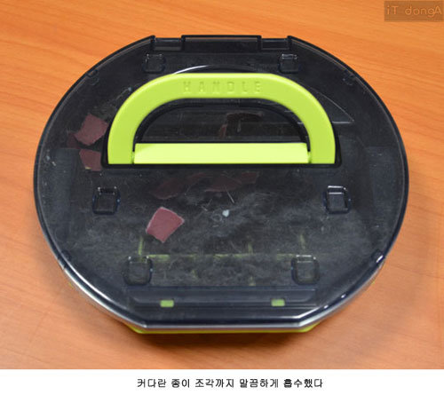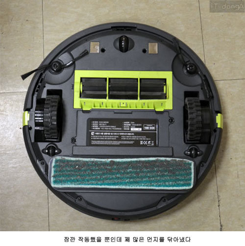 소리는 요란해도 청소 성능은 제법이었다. 제품 바닥면 중앙에 위치한 흡입 모터가 말끔하게 이물질을 빨아들였다. 먼지, 머리카락, 과자 부스러기는 물론이고, 굵은 모래알과 종잇조각도 무난하게 흡수했다. 모뉴엘에 따르면 BLDC(Brush Less DC) 모터를 장착해 동급 사양의 DC 모터를 탑재한 로봇청소기보다 흡입력이 30% 더 높다.