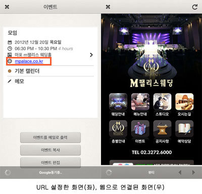 일정 입력 시 참고 URL 주소도 적어둘 수 있다. 미팅 때 업체 홈페이지 URL을 입력해두고 이동하면서 다시 한번 검토할 때 유용하게 썼다. 북마크 등의 친절한 기능은 제공하지 않으니 간단히 훑어보는 용도로 쓰는 편이 좋겠다.