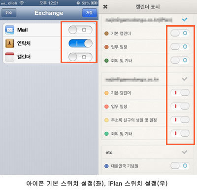 기본 캘린더와 iPlan 둘 다 쓰려면 골치 아파