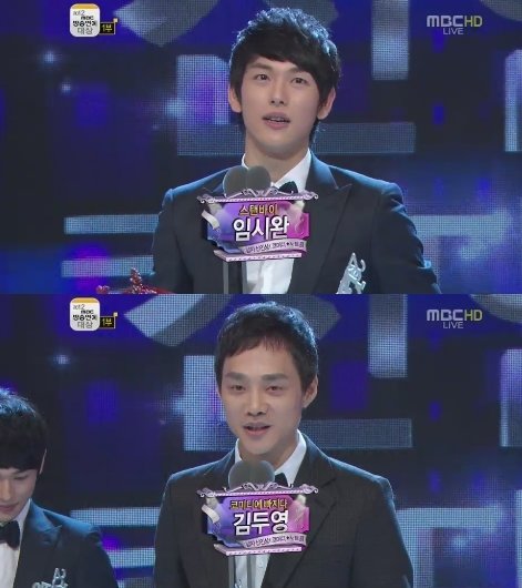 임시완과 김두영은 29일 '2012 MBC 방송연예대상'에서 코미디 시트콤 부문 남자 신인상을 수상했다.
