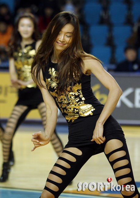 30일 오후 전주실내체육관에서 열린 `2012-2013 KB국민카드 프로농구` 전주 KCC 이지스와 고양 오리온스의 경기에서 KCC 치어리더가 율동을 선보이며 흥을 북돋우고 있다.