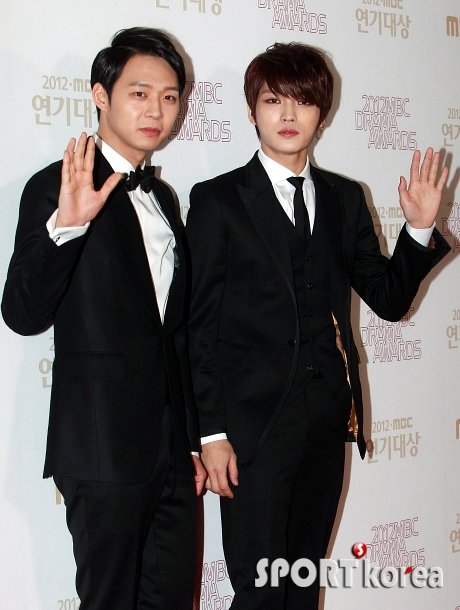 JYJ 박유천, 김재중(오른쪽)이 30일 오후 서울 여의도 MBC에서 열린 ‘2012 MBC 연기대상’에 참석해 포즈를 취하고 있다.