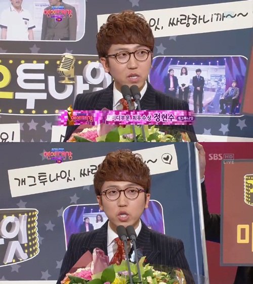 개그맨 정현수가 SBS 연예대상 코미디 부문 최우수상을 수상했다.