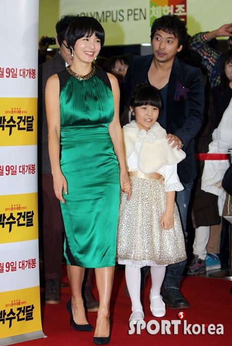 2일 오후 서울 코엑스 메가박스에서 열린 영화 ‘박수건달’(감독 조진규)의 VIP시사회에 참석한 배우 정혜영, 윤송이, 김형범(왼쪽부터)이 포토월로 입장하고 있다.