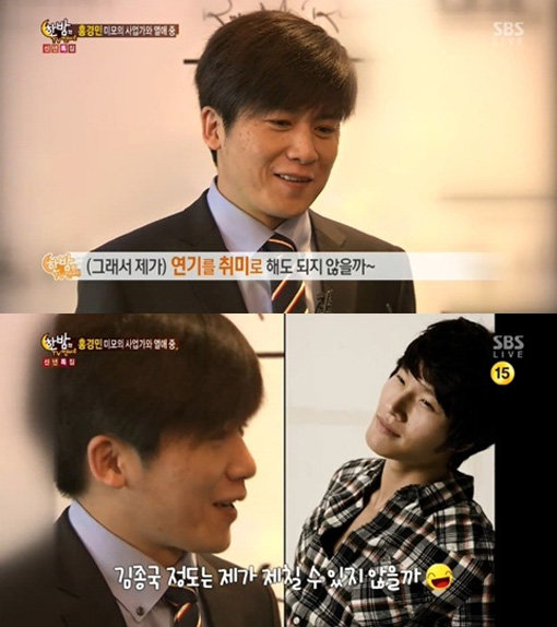 이날 홍경민은 “기사도 많이 보셨겠지만 굉장히 훌륭한 사업가다. 연기를 취미로 해도 되지 않을까”라고 말했다.