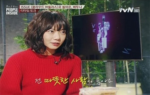 배우 배두나. 2일 방송된 케이블채널 tvN ‘백지연의 피플 인사이드’에서 ‘마지막 연애가 언제였느냐?’는 질문에 답하며.