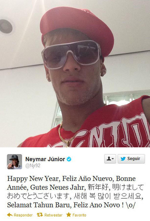 네이마르는 “Happy New Year, Feliz Año Nuevo, Bonne Année, Gutes Neues Jahr, 新年好, 明けましておめでとうございます, 새해 복 많이 받으세요, Selamat Tahun Baru, Feliz Ano Novo!”라며 영어, 스페인어, 프랑스어, 독일어, 포르투갈어, 중국어, 일본어, 한국어 등으로 팬들에게 새해 인사를 전했다.