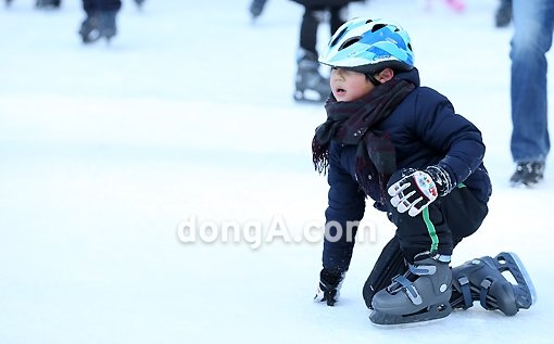 매서운 한파가 계속된 가운데 4일 오후 서울 광장 스케이트장을 찾는 한 어린이가 들거운 시간을 보내고 있다.