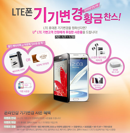 LG유플러스는 이날부터 공식 온라인 매장에서 ‘LTE 기기변경 황금찬스’ 이벤트를 시작했다. 영업정지 처분으로 30일까지 신규 가입자나 번호이동 가입자를 유치하지 못하게 되자 기존 가입자가 휴대전화 단말기만 바꾸는 기기변경에 대한 혜택을 강화한 것이다.