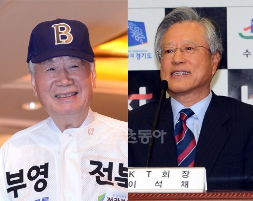 부영과 KT가 써넣은 ‘야구발전기금’은 제10구단 유치를 위한 마지막 베팅이다. 부영 이중근 회장(왼쪽 사진)과 KT 이석채 회장은 전면에 나서서 10구단 유치전을 지휘했다. 스포츠동아DB
