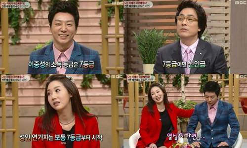 9일 방송된 MBC ‘기분 좋은 날’에는 ‘서프라이즈’의 재연 배우 이중성과 KBS ‘사랑과 전쟁’ 출연 배우 민지영이 출연해 소득 등급에 대해 언급했다.