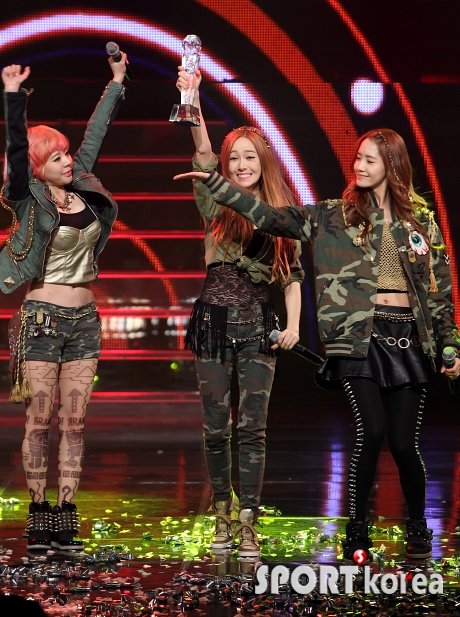 10일 오후 서울 상암동 CJ E&M에서 열린 ‘Mnet 엠카운트다운(엠카)’에 참석한 소녀시대 써니, 제시카, 윤아(왼쪽부터)가 1위를 차지한 후 환호하고 있다.