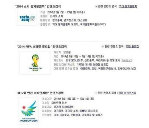 공개된 게시물에는 2014년에 열리는 대형 스포츠 이벤트에 관한 소식이 담겨 있다. 우선 2월 7일부터 23일까지는 ‘소치 동계 올림픽’이 있다. 이어 6월 13일부터 7월 14일까지는 ‘FIFA 브라질 월드컵’이 열린다.