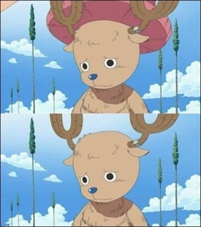 평소 핑크색 모자를 쓰고 다니는 사슴 쵸파가 모자를 벗자 노안 외모로 변신해 눈길을 사로잡은 것.