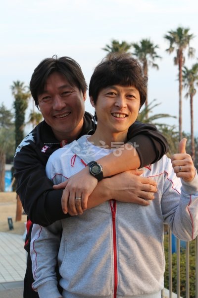 ‘李-李’ 콤비가 싱가포르 홈 유나이티드에서 재회했다. 홈 유나이티드 이임생 감독(왼쪽)은 예전 수원삼성 코치 시절 데리고 있었던 이관우를 최근 선수로 영입했다. 이관우는 은퇴 1년 반 만에서 싱가포르에서 마지막 불꽃을 태우게 됐다. 제주 서귀포로 전지훈련을 온 이 감독과 이관우가 다정한 모습을 취하고 있다. 서귀포|남장현 기자 yoshike3@donga.com 트위터 @yoshike3