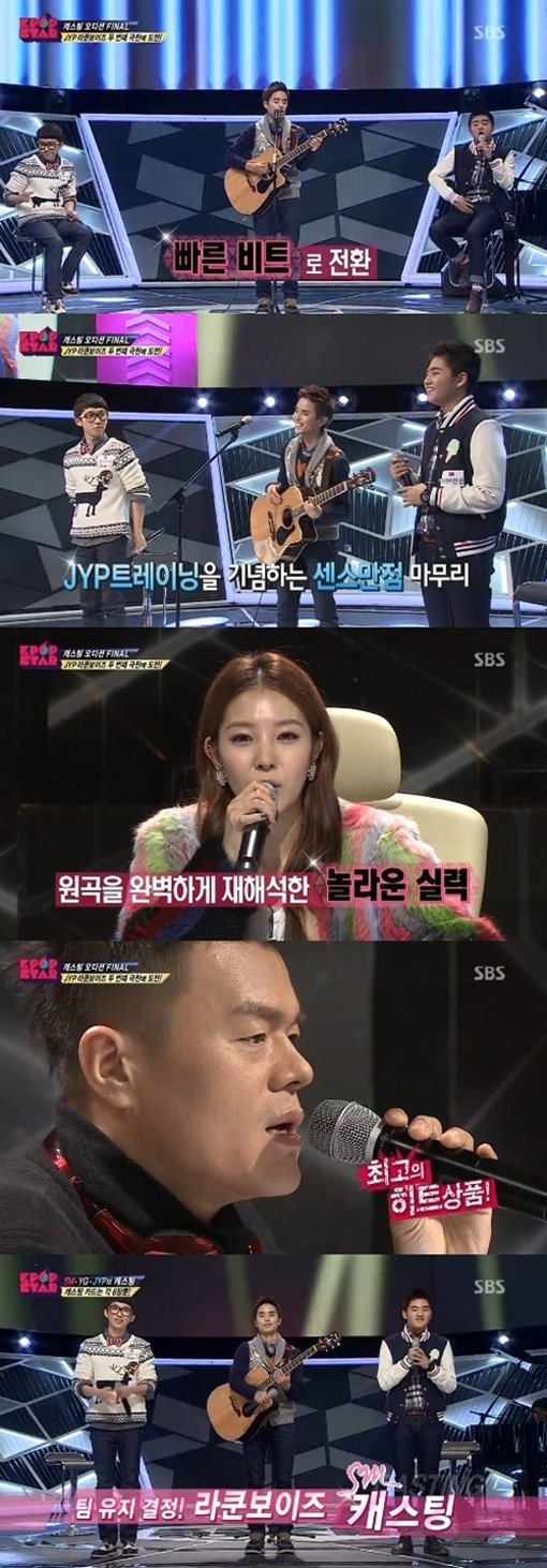 라쿤보이즈는 13일 방송된 SBS ‘일요일이 좋다-서바이벌 오디션 K팝스타 시즌2’(이하 K팝스타2) 캐스팅 오디션 파이널에서 원더걸스의 ‘Like This’에 선곡했다.