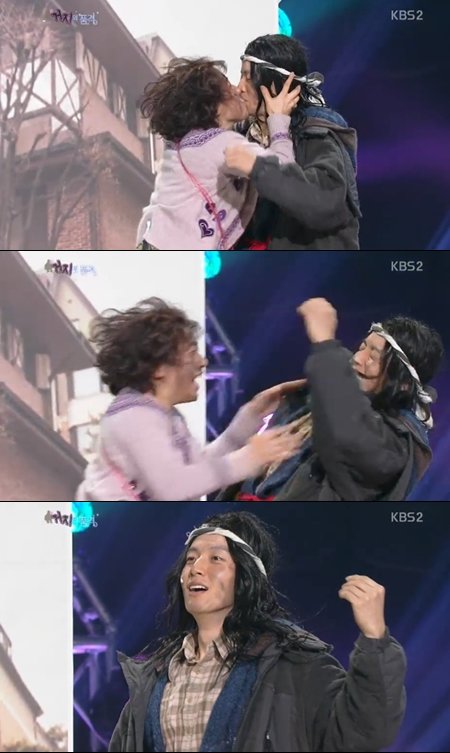 김영희는 쫓겨나기 전 “굿나잇 키스”라며 허경환의 입술에 키스를 하며 허겁지겁 무대 밖으로 나갔다. 이에 허경환은 “이건 과학이 아니라 가학이야”라고 말했다.