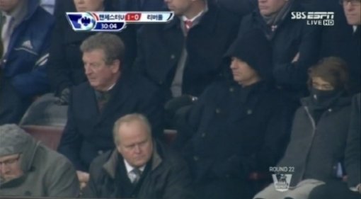 무리뉴 감독은 14일(이하 한국시각) 영국 맨체스터 올드 트래포드에서 열린 2012-2013시즌 잉글리시 프리미어리그(EPL) 22라운드 맨유와 리버풀의 경기 도중 중계 카메라에 포착됐다.