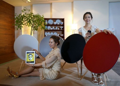 베오플레이 A9은 원반에 받침대가 달려 마치 비행접시를 연상케 했다. 사각형에 둥그런 사운드 출력부를 갖춘 일반적인 스피커와 달리 디자인이 상당히 독특하다. 기존의 뻔한 스피커 디자인을 완전히 탈피한 것. 본 기자도 사전에 제품 사진이 실린 행사 초청장을 보지 않았더라면, 새로 나온 스피커를 얼른 알아보지 못했을 것 같다. 개성도 개성이거니와 디자인이 깔끔해 세련되고 예뻤다.
