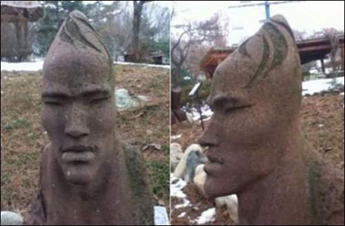 공개된 사진에는 사람 얼굴 형상을 하고 있는 동상이 담겨있다. 그런데 날렵한 콧날과 얼굴 라인, 가느다란 눈매가 김종국을 연상케 해 폭소를 자아냈다.