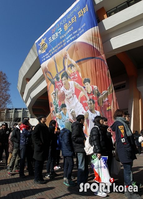 26일 오후 서울잠실실내체육관에서 열리는 `2013 KB 국민카드 프로농구‘ 레전드 올스타전을 보기 위해 많은 농구팬들이 줄을 서서 기다리고 있다.
