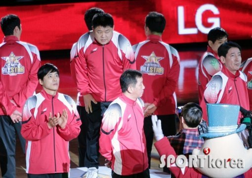 26일 잠실실내체육관에서 열린 `2013 KB국민카드 프로농구 올스타 파티` 첫날 빅스타(레전드) 올스타 경기에 앞서 드림팀의 강동희가 소개되고 있다.