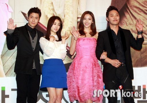 30일 오후 서울 여의도 콘래드호텔에서 열린 KBS 2TV 월화드라마 ‘광고천재 이태백’ 제작발표회에 참석한 배우 조현재, 박하선, 한채영, 진구(왼쪽부터)가 포즈를 취하고 있다.