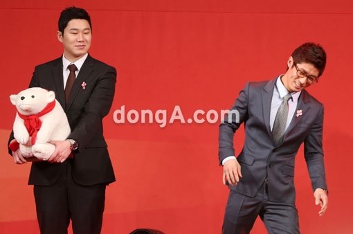 김재범, 양학선, 진종오, 기보배, 김지연, 신아람 등 올림픽 스타들이 한자리에 모였다. 31일 오후 서울 용산구 하얏트호텔 그랜드볼룸에서 코카-콜라 체육대상 시상식이 열렸다. 도마의 신 양학선이 셔플댄스를 추고 있다.