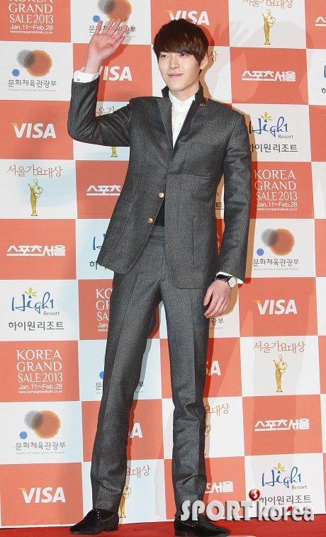 탤런트 김우빈이 31일 오후 서울 올림픽공원 핸드볼경기장에서 열린 ‘제22회 하이원 서울가요대상’에 참석해 레드카펫을 밟고 있다.