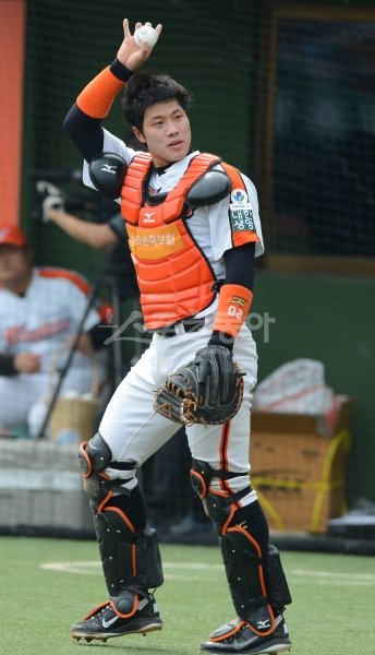 한화 정범모(26·사진)는 2013시즌 주전포수를 노리고 있다. 박노민 최승환 한승택과 함께 4대1의 경쟁을 벌이고 있지만, 자신감은 있다. 그는 고교 시절 메이저리그 미네소타로부터 입단을 제의 받았을 정도로 강한 어깨와 빠른 발을 겸비한 유망주였다. 2006신인드래프트에서 2차 3번(전체 18순위)으로 한화에 지명돼 입단한 뒤 부상과 군 입대로 발목을 잡혔지만, 지난해 기회가 찾아왔다. 10년간 팀의 안방을 책임졌던 신경현이 부진하면서 1군에 호출됐고, 모두 72경기에 출장해 투수들의 공을 받았다.