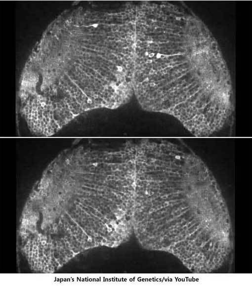 일본 국립유전학 연구소는 지난달 31일 발행된 학술지 ‘커런트 바이올러지’에 관련 논문을 게재해 주목을 받았다. 연구팀은 어린 제브라피시에 ‘GCaMP’라는 유전자를 주입해 두 단계 실험을 진행했다.