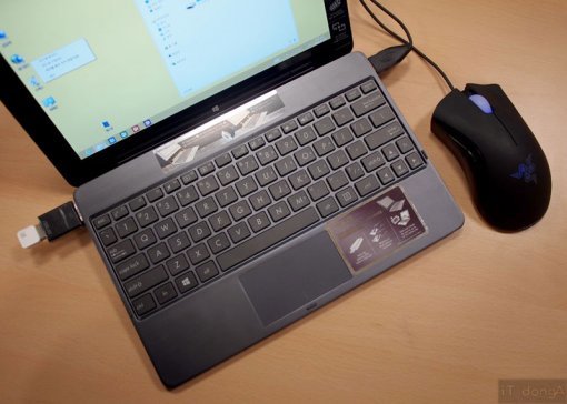 키보드 독 왼쪽의 32핀 충전 포트에 USB 변환 젠더를 꽂으면 USB 포트가 1개 더 늘어나는 효과가 있다. 한쪽엔 USB메모리를 꽂아 파일을 옮기고, 한쪽엔 마우스를 꽂아 사용하니 태블릿PC가 아니라 일반 넷북을 쓰는 듯한 느낌이었다.