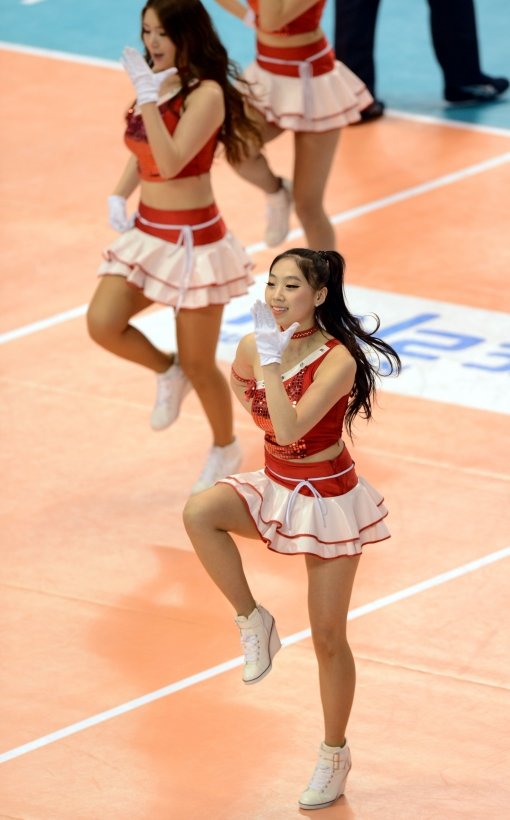 5일 오후 대전 충무체육관에서 열린 '2012-2013 NH농협 V리그' KGC 인삼공사와 IBK 기업은행의 경기에서 KGC 치어리더가 화려한 공연을 선보이고 있다.